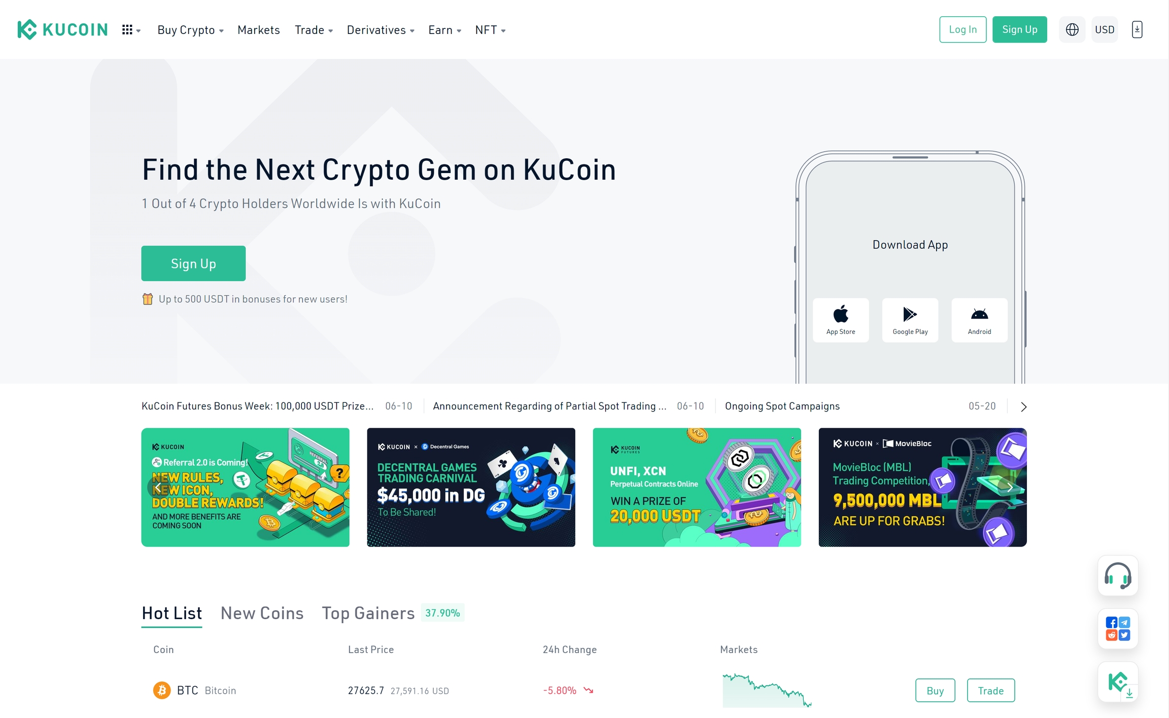 Users can access their KuCoin accounts via desktop, Android, and iOS mobile devices. Its platforms are available for free and once you’re signed up, you can log into your account to buy, sell, and trade crypto whenever you’d like. If you encounter problems or have questions about your account, you can reach out to KuCoin via live chat or submit a request for assistance.